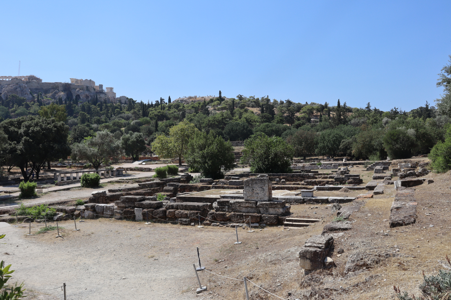 Le mot agora signifie « assemblée » : les citoyens s’y réunissaient. Puis le développement de la cité a nécessité d’autres lieux, comme la Pnyx, pour tenir les Assemblées. On s’y promenait, s’y cultivait, on rendait des cultes, on traitait les affaires courantes. L’agora a connu des pillages et des reconstructions de l’époque classique jusqu’au XIe siècle après J.-C. Subsistent des ruines de temples ou de bâtiments de la démocratie athénienne.
