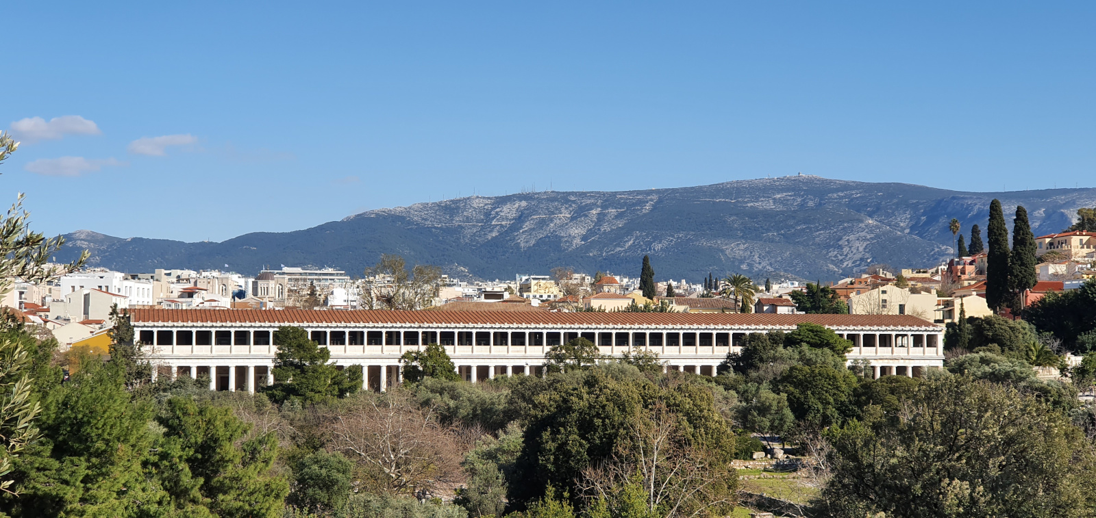 Fondée par le roi de Pergame Attale II au IIe siècle avant J.-C., cette galerie dédiée à la promenade et au commerce abrite aujourd’hui le musée de l’agora. L’agora antique comptait plusieurs stoai. Reconstruite par l’American School of Classical Studies, elle mesure 116 mètres de long sur 20 de large et offre deux étages de galeries. En arrière-plan à droite courent les pentes boisées du mont Hymette, célèbre dans l’Antiquité pour ses carrières de marbre et pour son miel.
