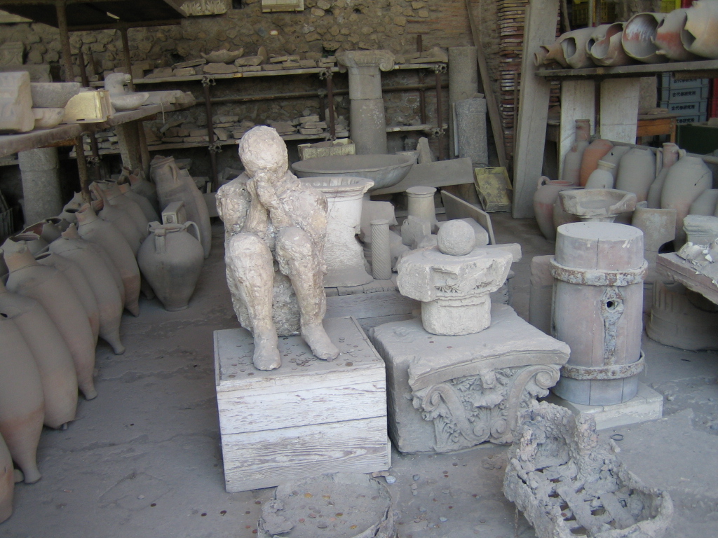 De nombreux chantiers de fouilles sont ouverts, y compris aux abords de la cité. En novembre 2020, à environ 700 m à l’extérieur des remparts de la cité a été retrouvée l’empreinte de deux hommes dont on a réalisé un moulage. L’un avait entre 30 et 40 ans, et était probablement d’un statut social élevé si l’on en croit les vêtements qu’il portait. L’autre plus jeune, au squelette usé, était peut-être son esclave.