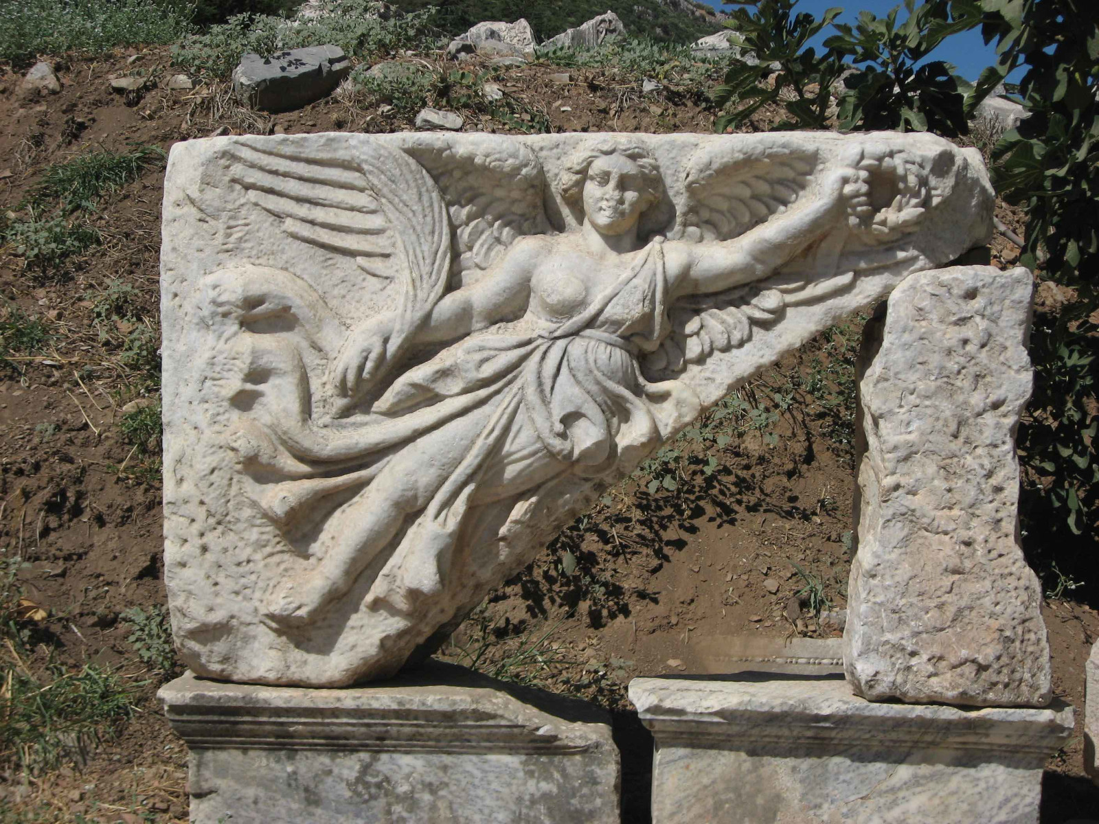 Sur la place de Domitien, se trouve un bas-relief en marbre de Nikè, la déesse de la Victoire, volant dans les airs et tenant une couronne de laurier : il pourrait provenir de la porte d’Héraclès / Hercule.