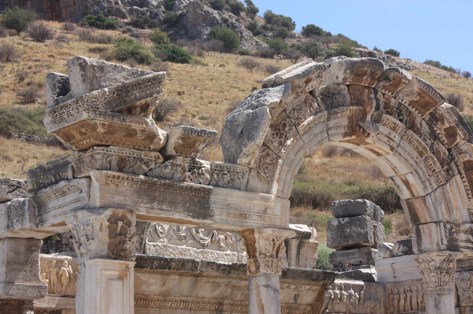 Le petit temple dit "temple d’Hadrien" a été édifié au début du règne de l’empereur, vers 117 ou 118. Il fut gravement endommagé par le séisme de 262 et restauré vers 391 sous le règne de Théodose Ier. Reconstruit à partir des fragments architecturaux subsistants, son porche (pronaos) donne accès à une petite salle de culte (nos), carrée et voûtée en berceau, où se trouvait à l’origine une statue d’Hadrien vénéré comme une divinité.