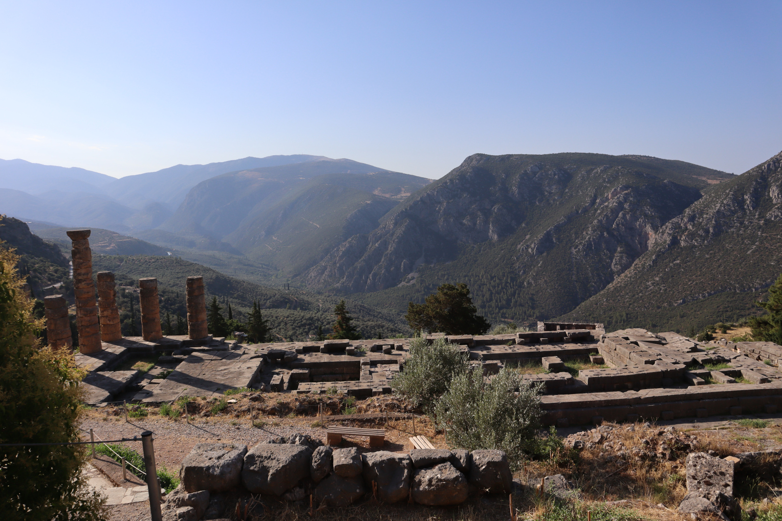 La cella du temple ornée d’une colonnade et de la statue en or d’Apollon abritait le trépied sur lequel était assise la Pythie. Elle se tenait penchée au-dessus de l’omphalos, une pierre sacrée qui symbolisait l’emplacement où s’étaient rencontrés deux aigles lâchés par Zeus consacrant Delphes, « centre du monde ».