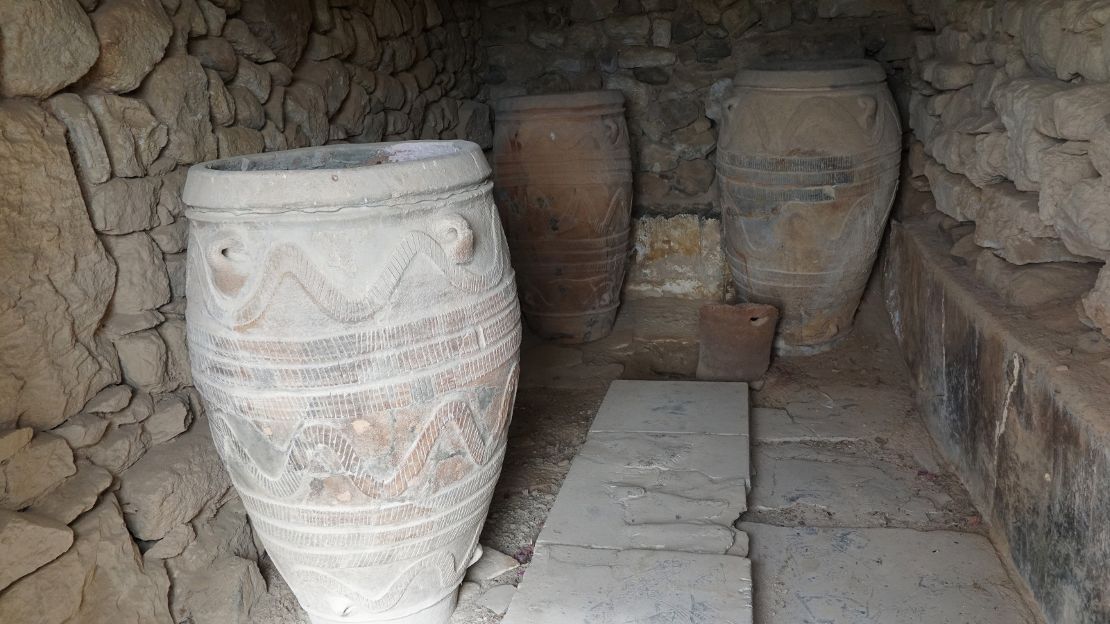 Les ateliers d’artisanat ont leur place dans le palais. On a retrouvé à Phaistos l’emplacement d’une production de poteries avec des pithoi pouvant atteindre 1,50 mètres de haut. L’argile était rapportée des pentes du Psiloritis voisin. La productivité augmenta avec l’invention du tour à poterie. Dans les petites anses, on glissait une corde pour faciliter leur transport vers les espaces de stockage. Aujourd’hui, certains potiers crétois ont renoué avec les techniques anciennes de fabrication.