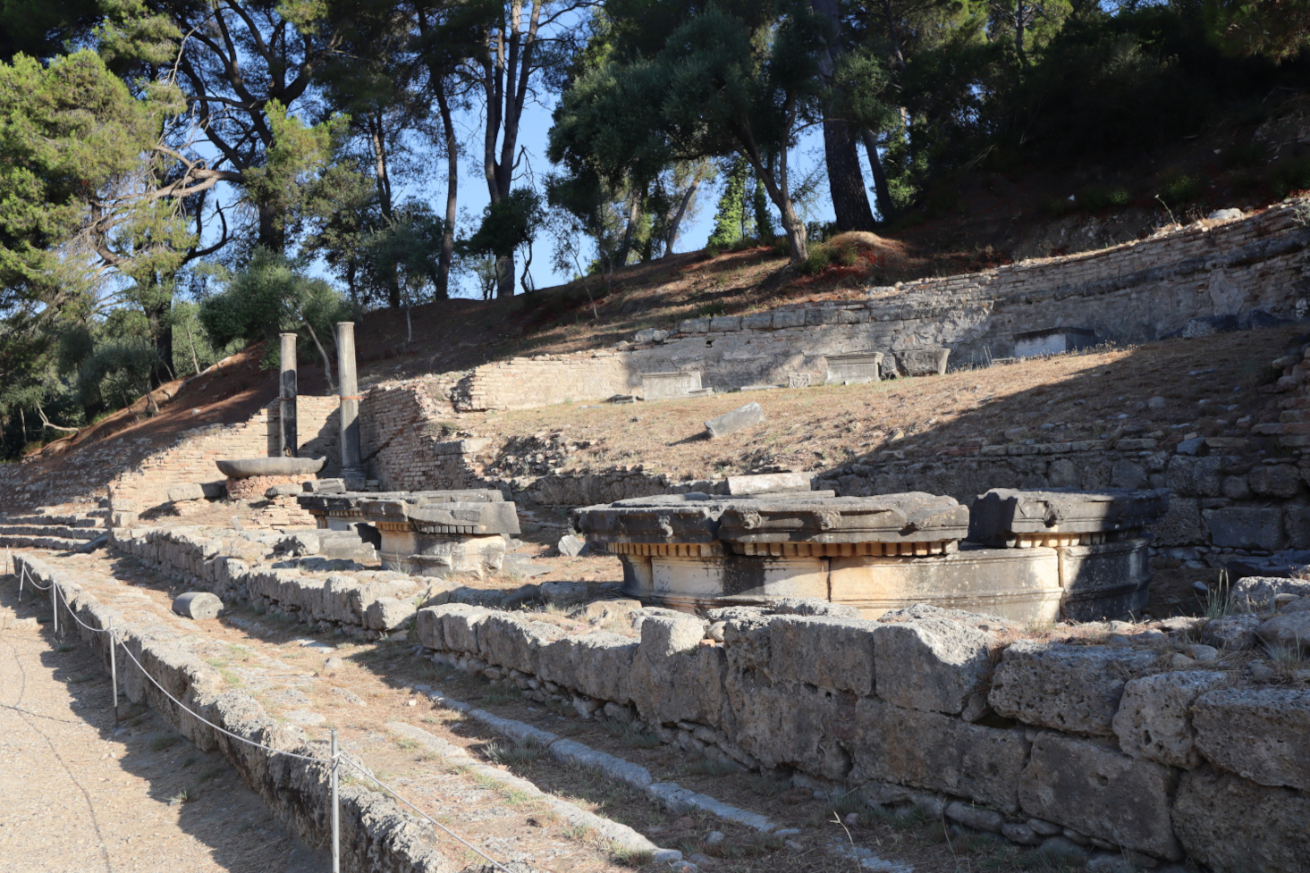 Hérode Atticus, célèbre rhéteur né à Marathon fait construire au IIe s. une fontaine de forme semi-circulaire revêtue de marbre. L’eau acheminée par un aqueduc se déployait dans plusieurs bassins. Le nymphée était richement décoré de statues d’Hérode et de sa famille ainsi que d’empereurs romains. Au centre se trouvait la statue d’un taureau offerte à sa femme Regilla (prêtresse de Déméter Chamyné aux jeux de 153), à l’image de l’animal offert en sacrifice à Zeus.