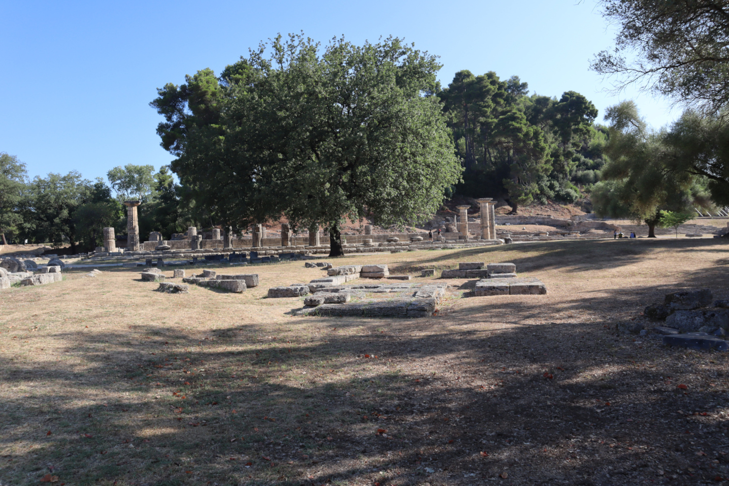 Situé entre le temple de Zeus et celui d’Héra, le Pélopion est l’un des plus anciens monuments de l’Altis. C’est un téménos (espace consacré à une divinité) datant peut-être du IIIe millénaire, entouré d’un mur de pierre. Au centre s’élevaient la statue et l’autel consacré au héros Pélops. À proximité se trouvait l’autel de Zeus où l’on immolait les victimes des sacrifices. Une fois par an, leurs cendres étaient pétries avec les eaux de l’Alphée voisin, le plus grand fleuve du Péloponnèse.