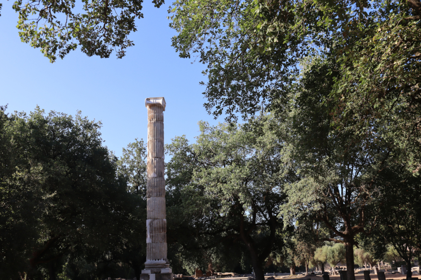 L’entrée du stade et celle de l’hippodrome étaient séparées de l’enceinte sacrée par le portique d’Écho qui, dit-on, répercutait sept fois le son de la voix. Selon Pausanias, il est devenu la stoa Poecile, un portique orné de peintures. Deux colonnes ioniques majestueuses surmontées des statues du roi égyptien Ptolémée II Philadelphe et de la reine Arsinoé en décoraient l’entrée.