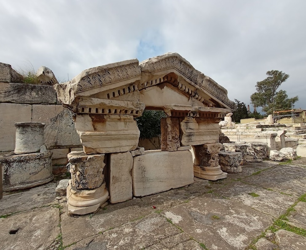 Dans les angles Sud-Est et Sud-Ouest du parvis en amont des Grands Propylées s’élevaient à 16 m de hauteur deux répliques de l'arc d'Hadrien à Athènes. L'un marquait la fin de la route du port, l'autre celle de Mégare. D’ordre corinthien, ils ont été construits en marbre pentélique par Antonin le Pieux ou Marc-Aurèle et dédiés aux deux déesses (Déméter et Perséphone) et à l'empereur Hadrien, comme le précise une inscription sur l’architrave.