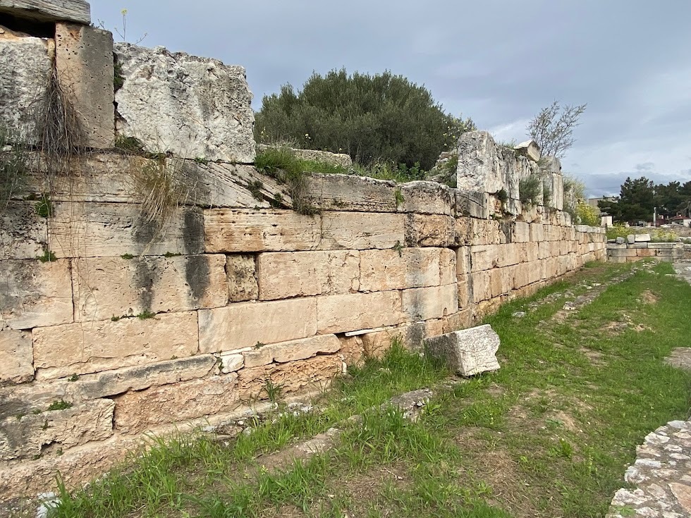 À l'époque de Périclès, au Ve siècle avant J.-C., le mur d'enceinte du sanctuaire fut prolongé à l'Est et au Sud au-delà du contour de l'enceinte de Pisistrate du VIe siècle avant J.-C. L’accès était interdit aux non-initiés, sous peine de mort. En dehors des portes de la ville s’étendait la plaine Rharienne, champ sacré où avait été semé le premier grain donné par Déméter.