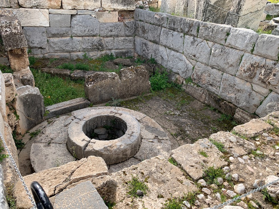 Selon le mythe, lorsque la déesse Déméter est arrivée à Éleusis, après plusieurs jours de recherche de sa fille, elle s'est assise pour se reposer près du puits Kallichoron. Son orifice est cité dans l’hymne à Déméter. Selon le voyageur Pausanias, les femmes d'Éleusis y dansèrent et chantèrent pour la première fois en souvenir de la disparition de Perséphone dans un précipice. On exécutait des rituels autour de ce puits.