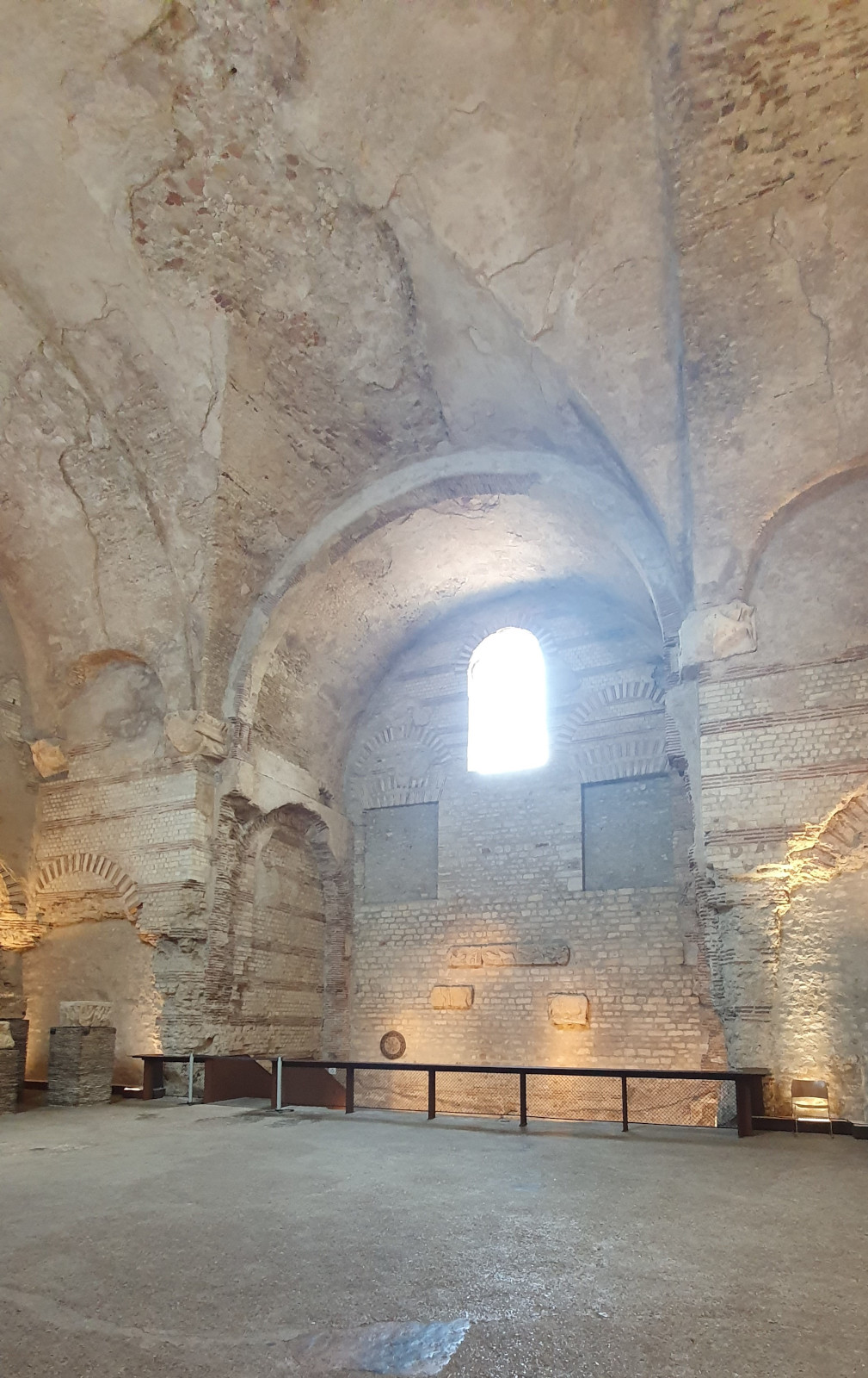 Les clients des thermes achevaient leur parcours dans le frigidarium et sa piscine d’eau froide. La salle était entourée de quatre cours qui permettaient de laisser entrer la lumière et d’assurer une bonne isolation thermique renforcée par des murs d’une épaisseur de 2 m. La voûte qui s’élève à plus de 14 m. est l’une des plus hautes encore observables de l’Occident romain. Les quatre blocs sculptés du fameux pilier des Nautes sont aujourd’hui exposés dans ce vaste frigidarium.