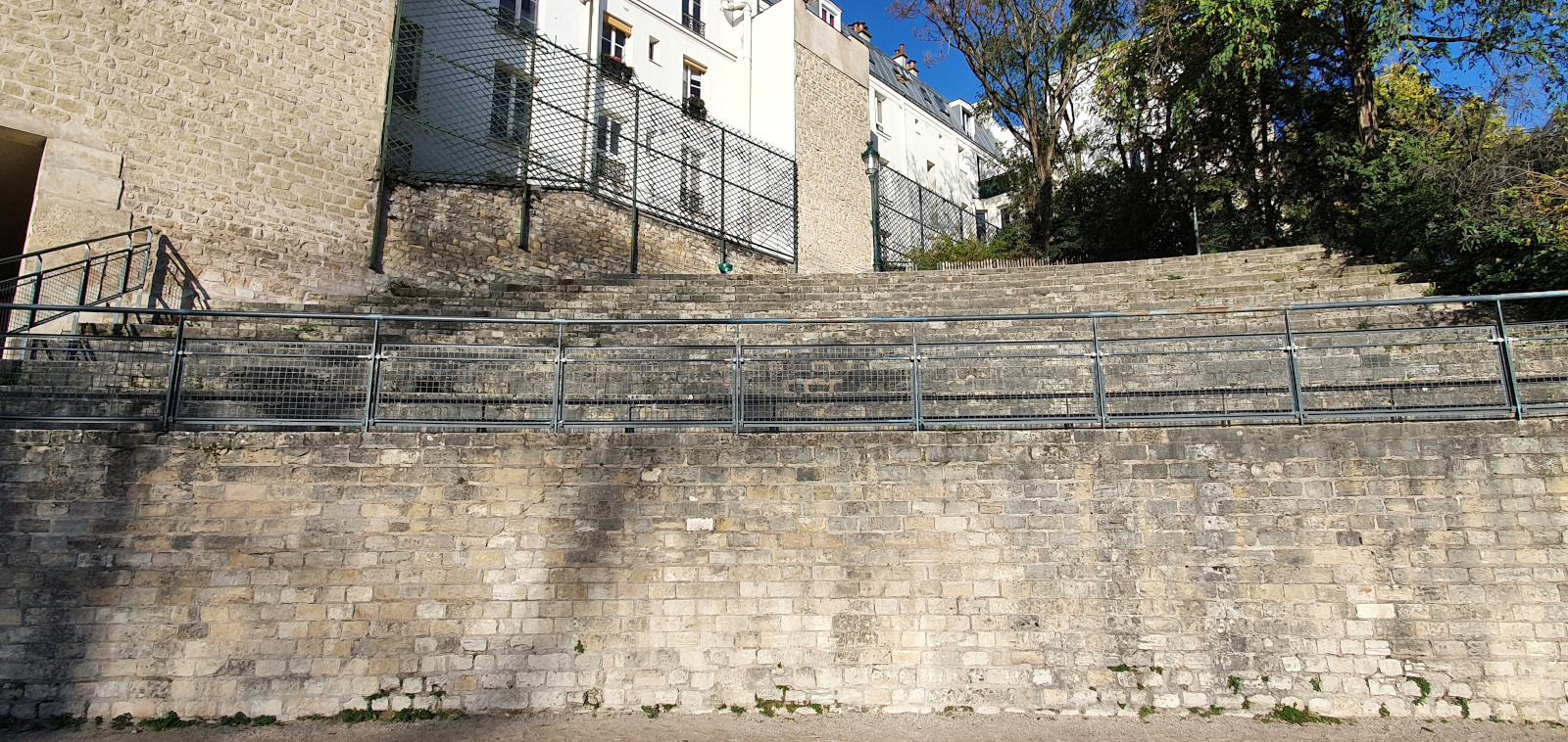 La cavea s’appuie sur la pente sud-est de la Montagne Sainte-Geneviève. Aucun gradin n’a été retrouvé sur place. De même que pour la façade monumentale de l’amphithéâtre, les blocs ont été entièrement démantelés pour construire d’autres édifices, notamment l’enceinte de la Cité au IVe siècle. Certaines pierres gravées d’initiales ou de noms propres indiquaient probablement des sièges réservés. Un velum dont on a retrouvé des points d’attache protégeait les spectateurs.