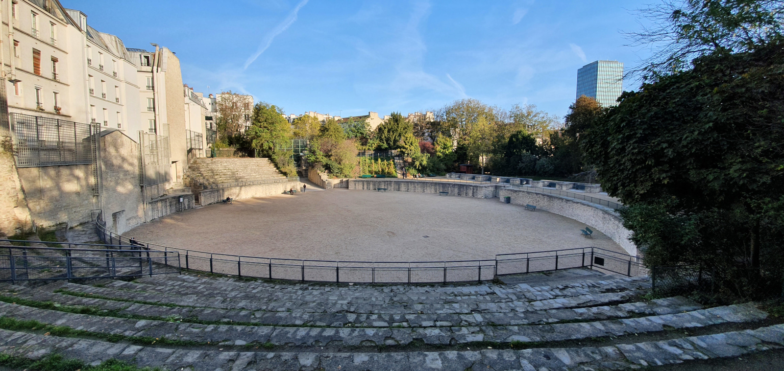 Appelé traditionnellement « arènes de Lutèce », l’amphithéâtre gallo-romain de la fin du Ier siècle se trouvait à l’écart de la ville du Haut-Empire. L’édifice découvert par Th. Vacquer n’aurait pu être préservé sans l’intervention de personnalités influentes telles que Victor Hugo. L’amphithéâtre mixte, puisque la partie manquante de la cavea est occupée par une scène, pouvait accueillir 17000 personnes venues du territoire des Parisii. Il a été grandement restauré par J. Formigé au début du XXe siècle.
