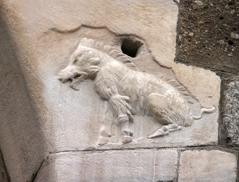 L’archéologie atteste du développement d’un noyau urbain d’origine celtique dès les Ve et IVe siècles avant J.-C. dans la région de Mediolanum. Mais, le Moyen-Âge s’empare d’une légende selon laquelle Bellovesos, averti par la déesse gauloise Belisama, aurait choisi de fonder Mediolanum là où il a aperçu une laie à moitié recouverte de laine (medio-lanata). Un bas-relief peut-être du VIIe siècle intégré à la deuxième arche du Palazzo della Ragione vise à alimenter la légende.