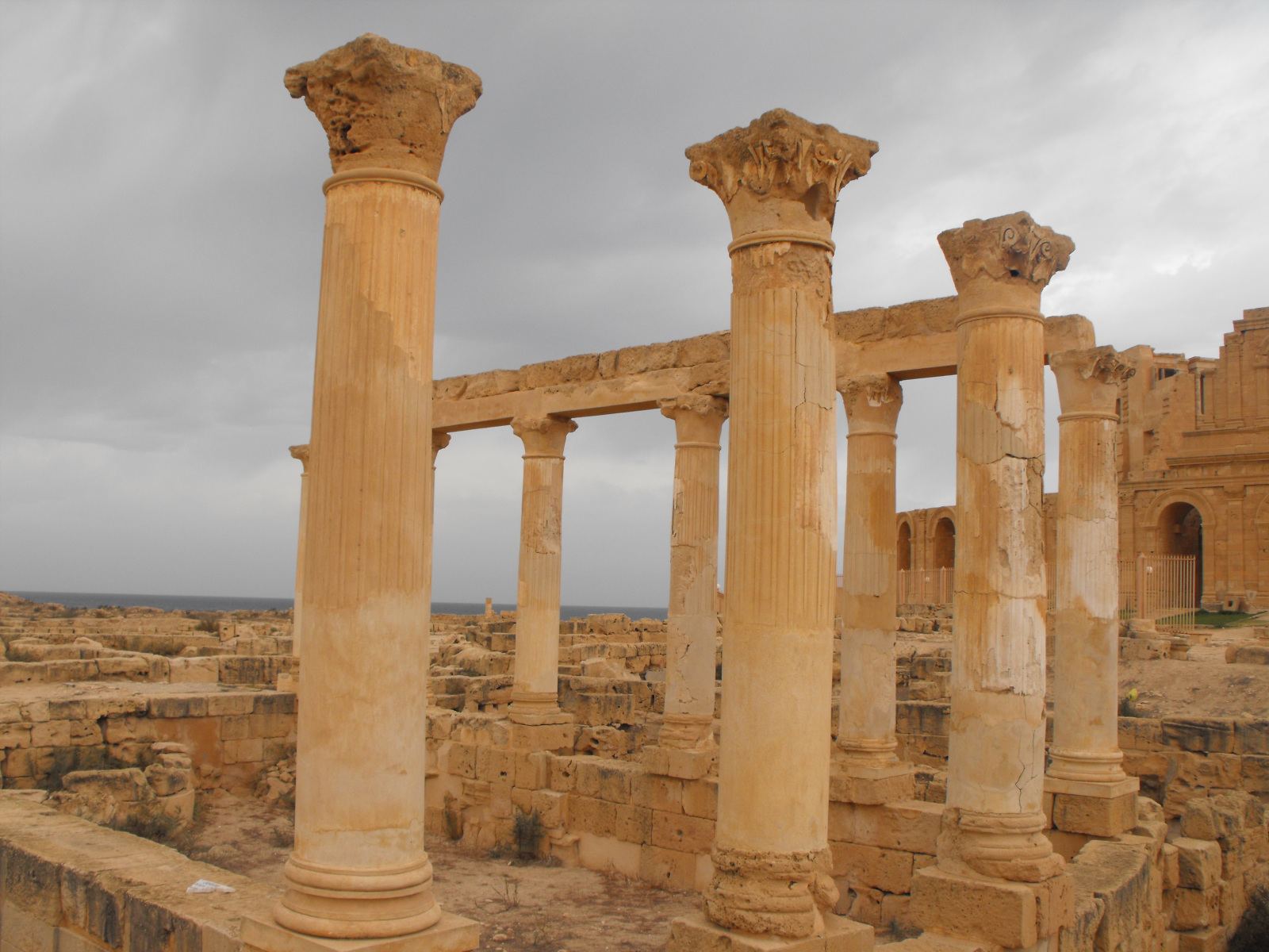Dès la seconde moitié du IIe siècle après J.-C., la cité de Sabratha s’étend vers l'Est selon un tracé régulier de rues parallèles au cardo (axe Nord-Sud) et au decumanus (axe Est-Ouest). Cette maison à péristyle, dont on a relevé quelques colonnes surmontées de chapiteaux corinthiens en témoigne. Elle a été construite à proximité du théâtre.