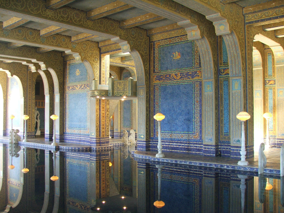 Le plan de la piscine intérieure, appelée Bains romains, est peut-être emprunté au tepidarium des thermes romains de Caracalla. La réalisation du décor s’inspire des mosaïques du mausolée de l'impératrice Galla Placidia. Situé à Ravenne, devenue capitale de l’Empire romain d’Occident en 402, ce mausolée du Ve siècle après J.-C. aux mosaïques d’un bleu profond offre une des plus belles réalisations de l’art chrétien marquant le début de la transition entre l'art paléochrétien et l'art byzantin.
