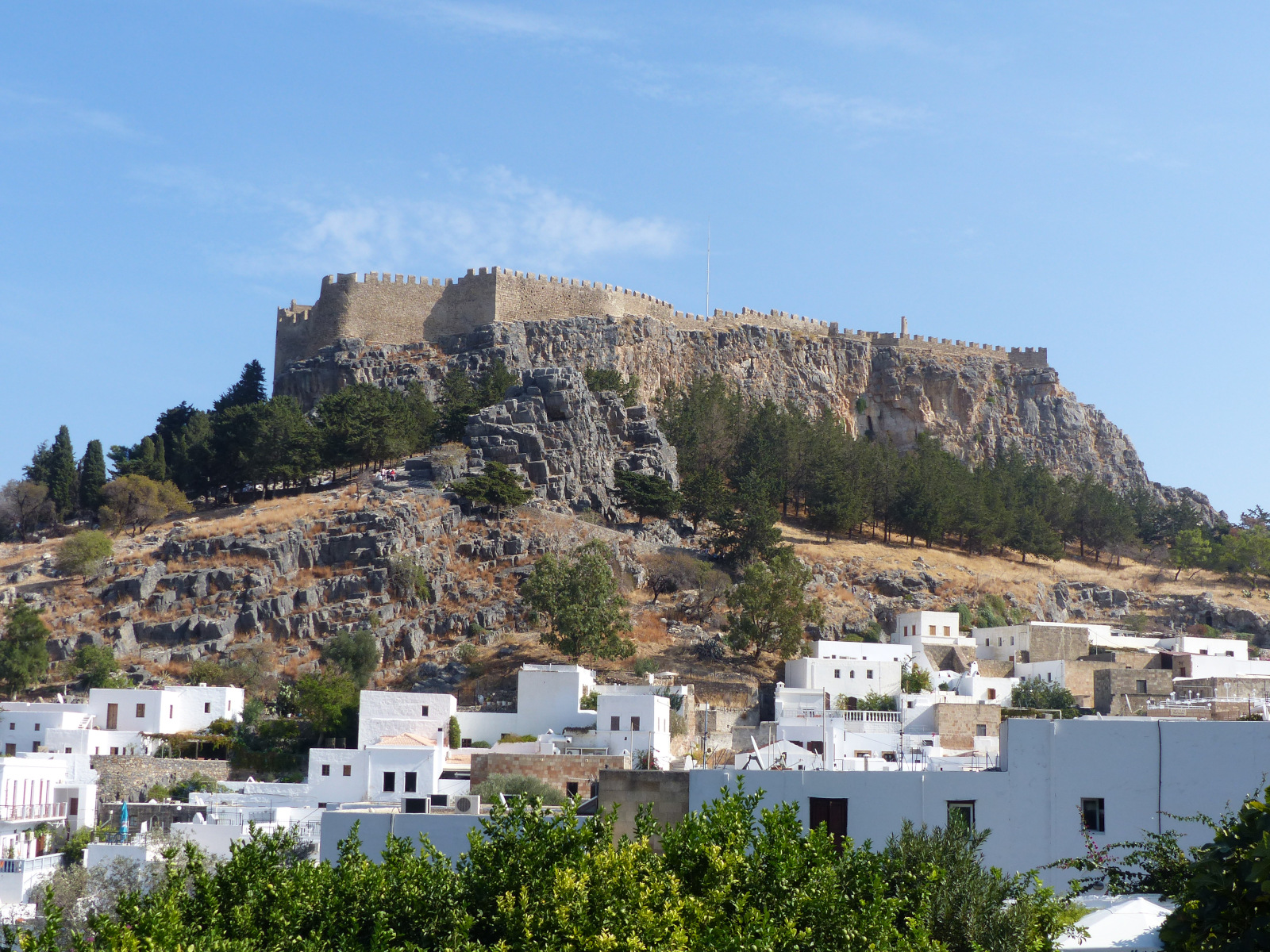 Sur la côte Est de l’île de Rhodes, l’acropole de Lindos s’élève à plus de 110 mètres et surplombe la mer. Déjà occupée à l’âge de bronze (IIe millénaire avant J.-C.), Lindos est connue pour son culte dédié à Athéna Lindia, y compris sous l’occupation romaine. La citadelle est fortifiée aux époques byzantine, ottomane et médiévale. C’est aussi la ville natale de Charès de Lindos, créateur de l’une des Sept Merveilles du monde antique, le colosse de Rhodes.