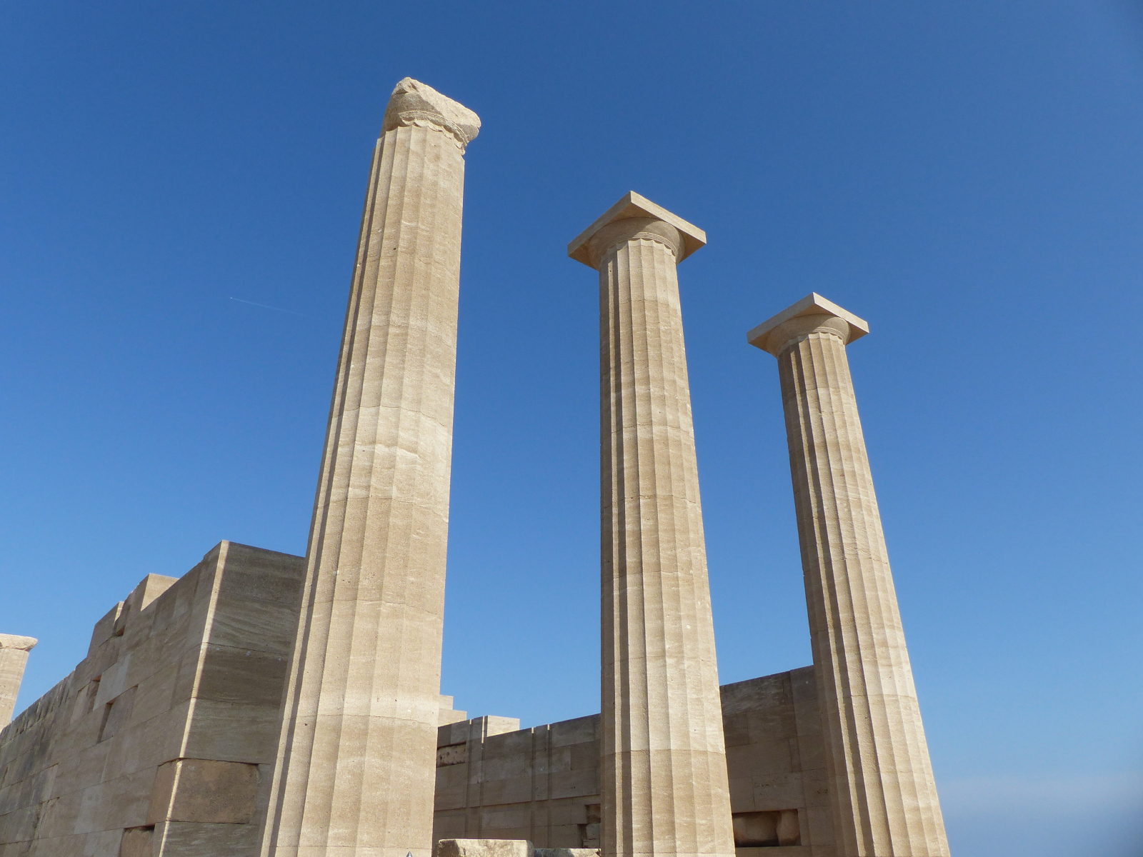 La légende raconte que le temple aurait été fondé par Danaos ou par ses filles, les Danaïdes. Athéna aurait aidé Danaos à construire le premier navire connu afin d’aider ses filles à fuir les fils d’Ægyptos, frère de Danaos, qui voulaient les contraindre au mariage. Reconnaissant, il fit escale à Lindos et consacra un culte à Athéna dont l’épiclèse Lindia se réfère au lieu géographique et non au pouvoir de la déesse.