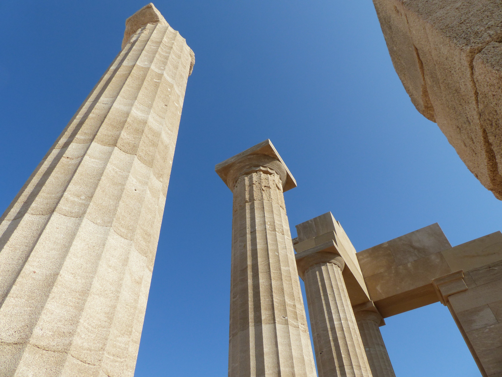 Construit dans un grès local fragile, le temple dorique a été restauré selon la technique architecturale de l’anastylose qui propose une reconstruction à partir de vestiges. Les premières interprétations du site, au début du XXe siècle, ont donné lieu à des corrections au XXIe siècle Amphiprostyle, le temple comportait quatre colonnes en façade et renfermait une statue d’Athéna portant un bouclier et probablement une couronne, un polos, d’après les statuettes votives que l’on a pu retrouver.