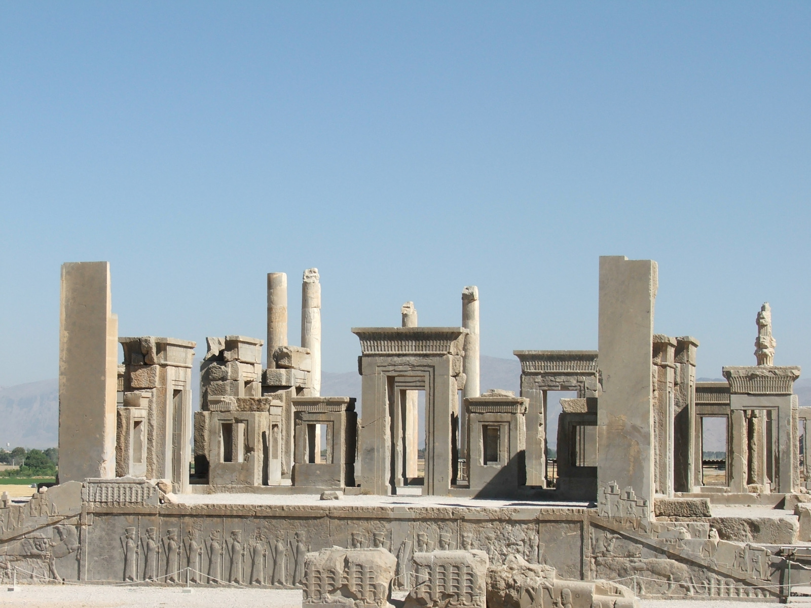 Faisant partie d’un complexe palatial plus vaste, appelé « apadana », le palais de Darius Ier, achevé par son fils Xerxès Ier a été construit en une pierre noire et polie qui a mieux résisté au temps. Des bas-reliefs invitent à y entrer par les rampes d’escaliers. Ils illustrent des soldats de la garde royale et des prêtres qui portent le nécessaire pour des cérémonies. Le palais était composé d’une succession de salles. Un portique au Sud s’ouvrait sur la grande salle hypostyle de l’apadana.