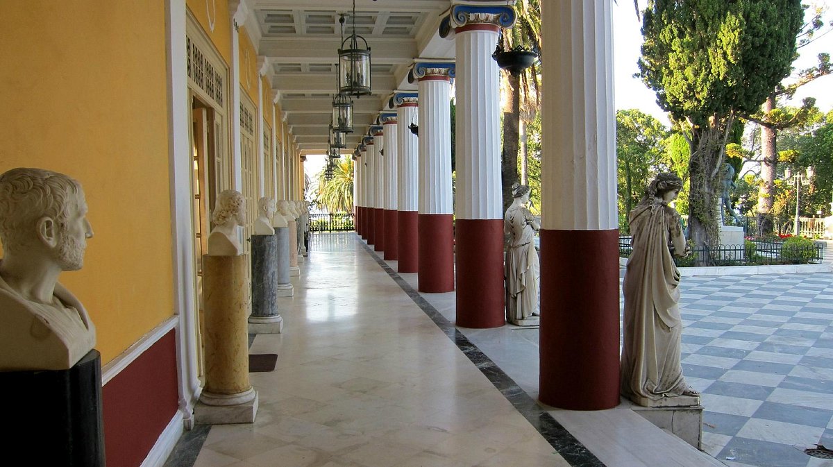 Le long du mur du péristyle se trouve la « Galerie des philosophes » ornée de copies de douze bustes exposés au Musée archéologique national de Naples. Ils représentent des auteurs de l'Antiquité qu’affectionnait l’impératrice : aux côtés d’Homère, des philosophes tels que Platon (Ve-IVe siècles avant J.-C.), des poètes tels que Sophocle (Ve siècle avant J.-C.) et des orateurs tels que Démosthène (IVe siècle avant J.-C.). Sissi jugea digne de leur adjoindre le poète et dramaturge anglais, Shakespeare (1564-1616).