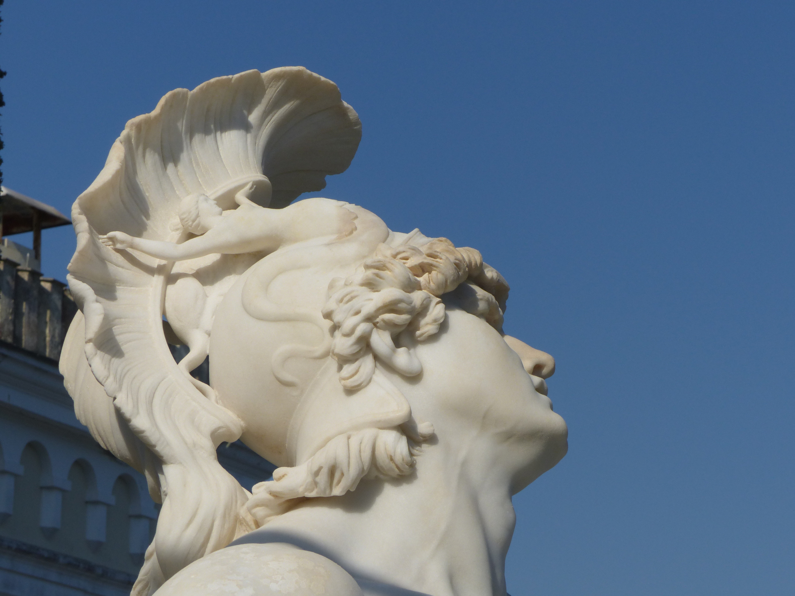 Achille, à terre, rappelle sa position vulnérable, après la mort de Patrocle, avant que sa mère ne réclame à Héphaïstos de nouvelles armes : un grand bouclier orné d’un décor somptueux, une cuirasse, des cnémides, une lance et une épée. Homère (Iliade, XVIII, 464) précise que les armes du dieu forgeron n’écarteront pas le héros de la mort. Son casque d’hoplite orné de palmettes et d’une figure mythologique marine ne masque pas la douleur qu’on peut lire sur son visage tendu vers le ciel.