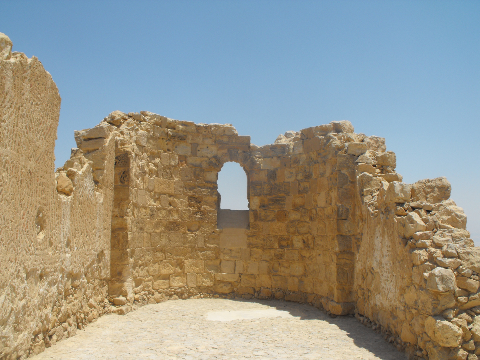 La période byzantine est la troisième grande période identifiée sur le site de Massada. À la suite d’un fort tremblement de terre, qui provoque l’effondrement de la majeure partie des édifices hérodiens subsistants, une petite communauté de moines chrétiens s’établit sur le site. Aux Ve et VIe siècles après J.-C., ils construisent une petite église à nef unique et abside orientale, pavée de mosaïques colorées. Les murs étaient décorés de motifs en pierres colorées et de tessons de poterie.