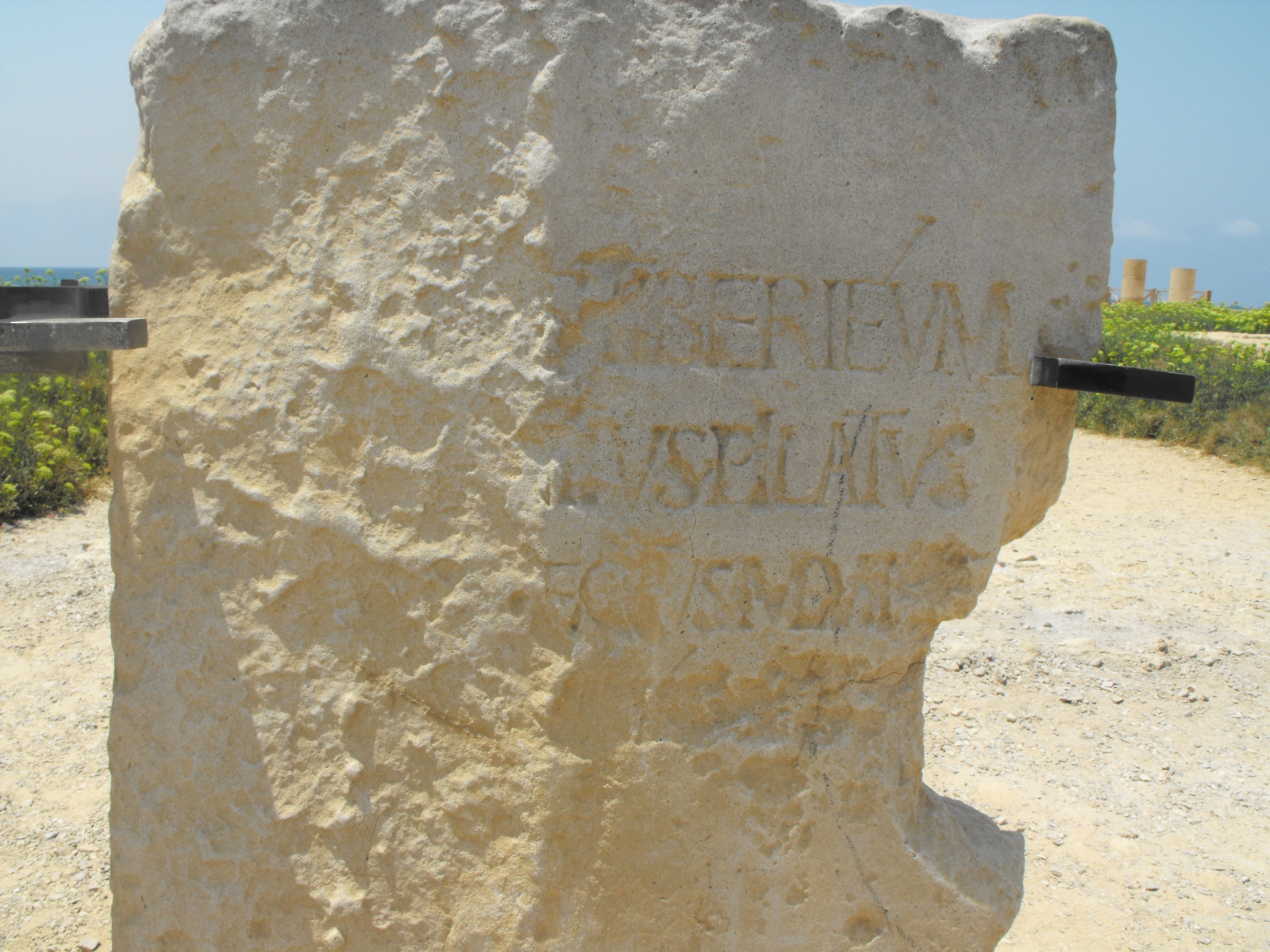 Dès 6 ap. J.-C., un préfet administre la province romaine de Judée et réside à Césarée. En 26 ap. J.-C. y est nommé Ponce Pilate que les évangiles impliquent dans les événements liés à la mort de Jésus. L’existence du préfet est authentifiée par cette seule inscription (AE, 1963, n° 104). ...s Tiberiéum ... [Po]ntius Pilatus ... [Praef]ectus Iuda[ea]e. Cette pierre d’un monument consacré à l’empereur Tibère avait été remployée dans le théâtre. L’original est conservé au Musée d’Israël.