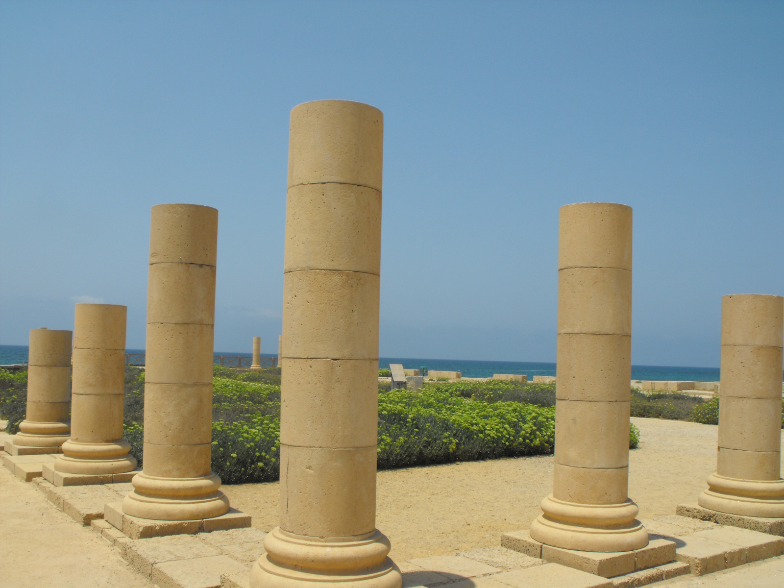 Le palais royal se développait en trois parties. Le niveau inférieur s’avançait sur la mer. Désormais partiellement submergé, il laisse voir aujourd’hui encore des mosaïques. Symbole du pouvoir d’Hérode, se trouvait au centre du palais une cour à péristyle ornée des plantes favorites des riches habitants de Rome et de Pompéi. On a retrouvé des graines de pollens fossiles de plantes de pins, d’oliviers, de noisetiers ou encore de roses. À l’est se trouvait le prétoire des procurateurs romains.