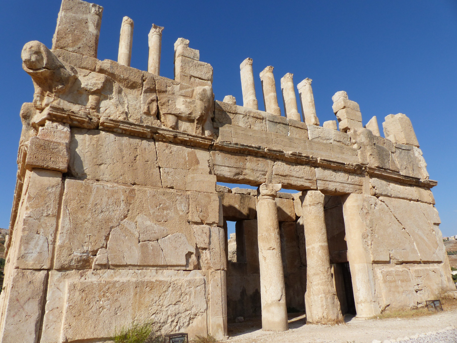 Les deux façades du château sont symétriques. Deux colonnes massives in antis marquent l’entrée vers un vestibule. La façade sud est surélevée de colonnes aux chapiteaux corinthiens. Ils ornaient une loggia à ciel ouvert entourée de quatre chambres. Le premier étage était surélevé d’un second niveau de plan identique, mais resté inachevé. Des traces de pigments et d’enduit ont révélé que certaines parties de l’édifice étaient peintes de dorures et de bleu d’Égypte.