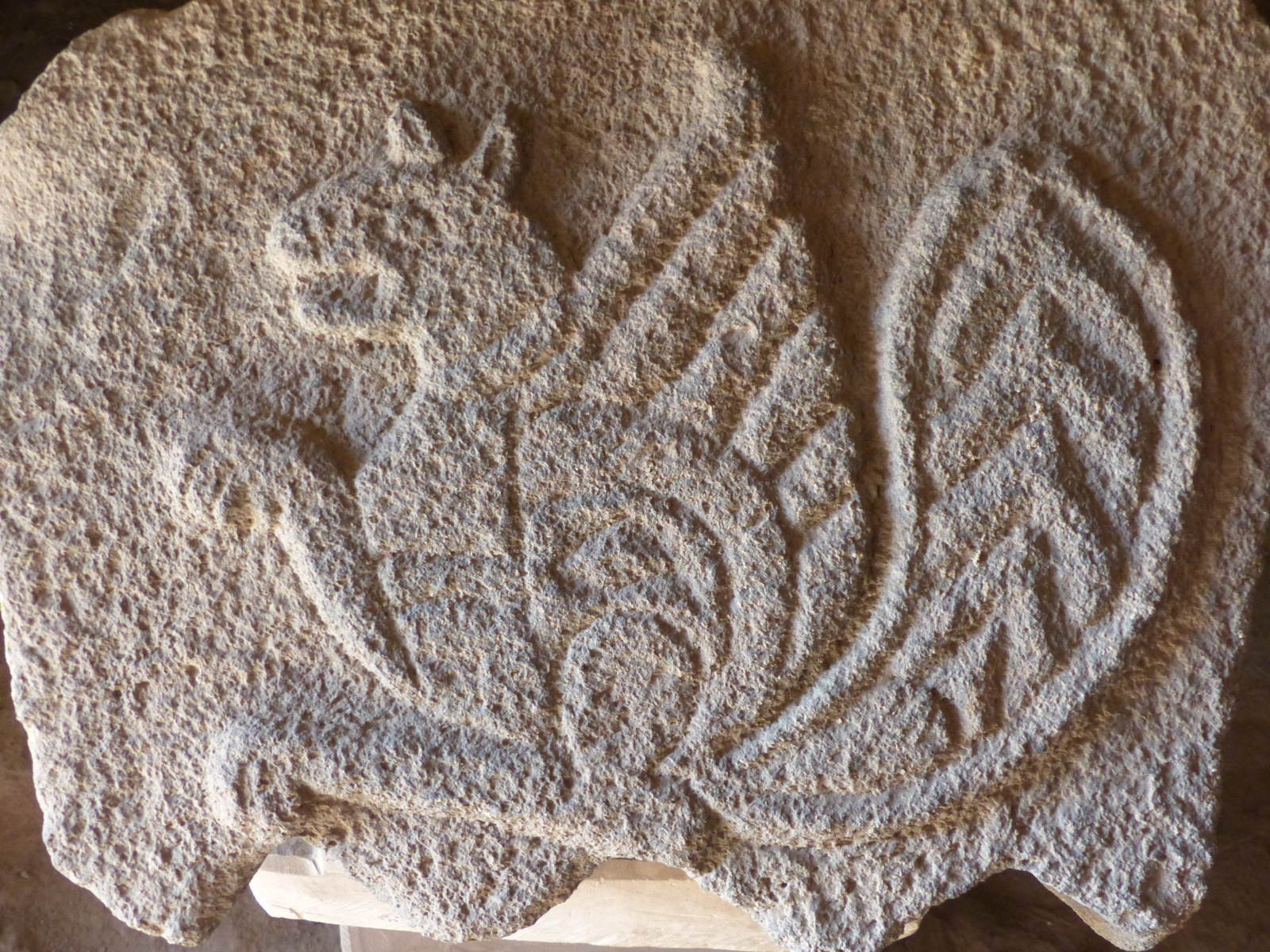 On a retrouvé des motifs animaliers de l’époque omeyyade (dynastie fondée au VIe s.) sculptés dans des blocs de basalte. Leurs thèmes sont empruntés au monde hellénistique et sassanide. Le Simorgh est une créature fabuleuse de la mythologie perse qui habite des lieux où l'eau se trouve en abondance. C’est un animal à protomé de chien, griffes de lion, muni d'une paire d'ailes et d'une queue qui remonte verticalement en se végétalisant. Les Perses sassanides associaient le Simorgh à la fertilité.