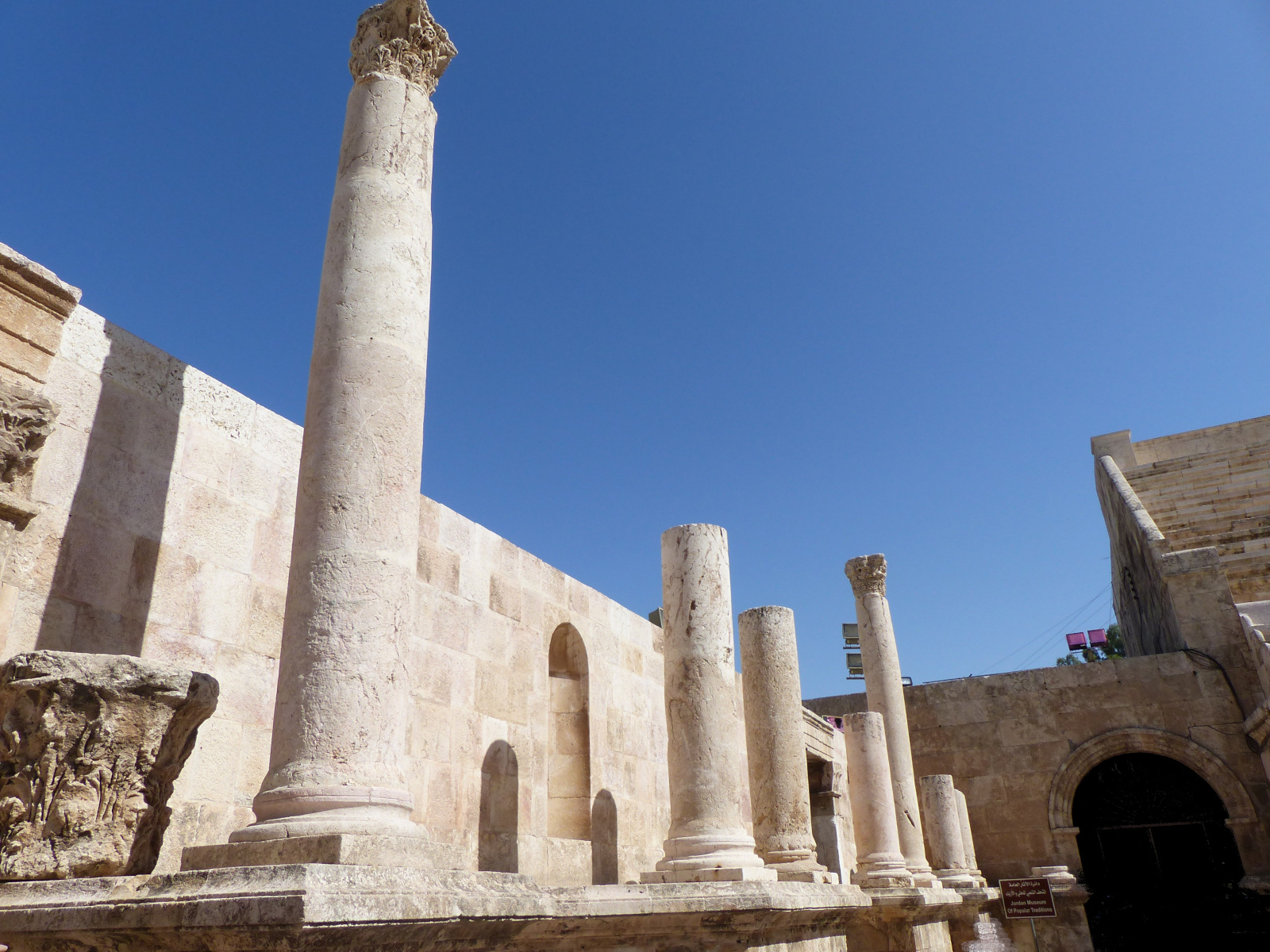 Les acteurs se produisaient sur une estrade en bois qui s’avançait devant ce mur. Les colonnes et les niches qui étaient ornées de statues laissent imaginer le décor du mur de scène (frons scaenae) qui s’élevait sur plusieurs étages et assurait une bonne acoustique. Le théâtre et le mur de scène datent du règne d'Antonin le Pieux (138-161 ap. J.-C.). Les portiques de la place du forum adossés à ce mur (frons post scaenam) renforçaient la mise en valeur du théâtre et les effets de perspective.