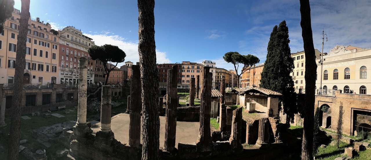 Sur la vaste place rectangulaire aujourd’hui nommée Largo di Torre Argentina, non loin du Capitole, se trouvent les ruines de l’Area Sacra, le quartier sacré du Champ de Mars : les archéologues ont pu y situer la Curie de Pompée, dans laquelle Jules César fut assassiné le 15 mars 44 avant J.-C.