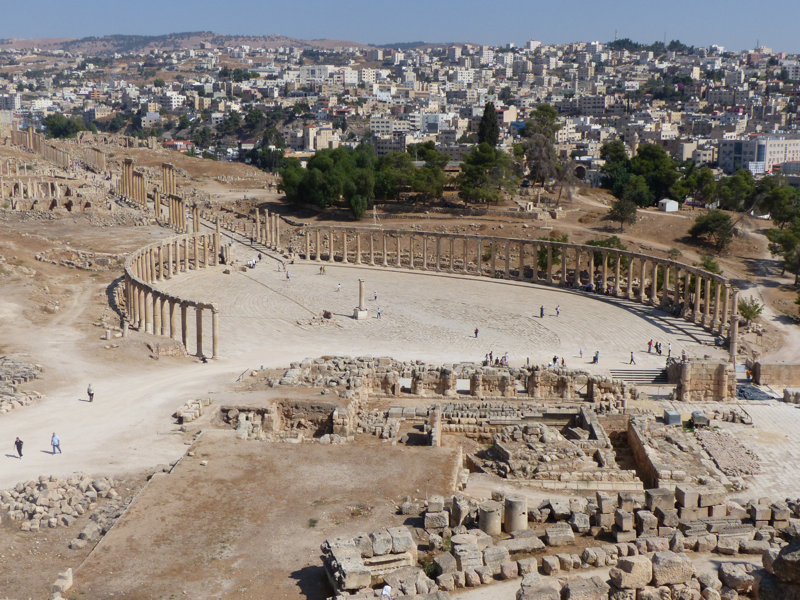 Gerasa (Jerash) aurait été fondée au IVe s. av. J.-C. sous le règne d’Alexandre le Grand au nord de la Jordanie à 40 km d’Amman. La cité se développa sur les deux rives du Chrysorhoas, « rivière d’or ». Pompée établit la paix dans la région en 63 av. J.-C. Membre de la Décapole, la cité, rattachée à la province d’Arabie par Trajan en 106 ap. J.-C. agrandit son tissu urbain jusqu’au IIIe s. ap. J.-C. en de majestueuses places qui relient de longues rues orthogonales bordées de portiques.