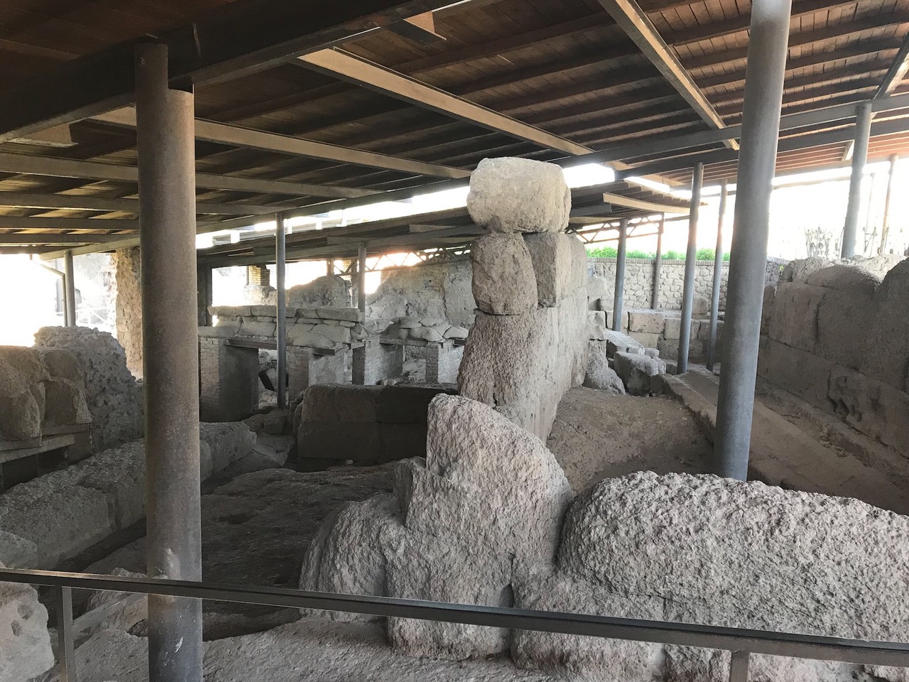 Vue des fondations des cabanes en bois découvertes sur la colline du Palatin : les archéologues les ont datées du VIIIe siècle avant J.-C.