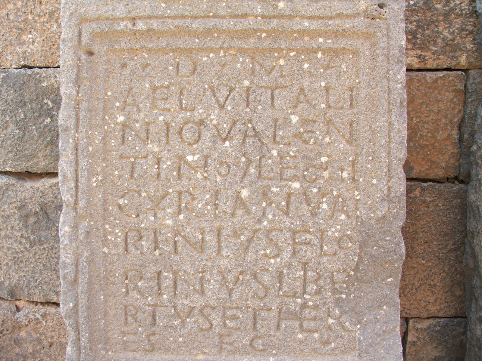 On a retrouvé à Bosra des inscriptions en nabatéen et surtout en langue grecque. Mais le latin était employé par les soldats romains ainsi que dans les formulaires des épitaphes. La stèle funéraire (AE 1965, 26) est dédiée à Aelius Vitalinus Valentinus, centurion de la légion IIIe Cyrénaïque. Son affranchi (libertus) et héritier (heres) en est le dédicant. Cette légion basée dans un vaste camp au nord de Bosra assurait une présence militaire romaine en patrouillant dans la Province d’Arabie.