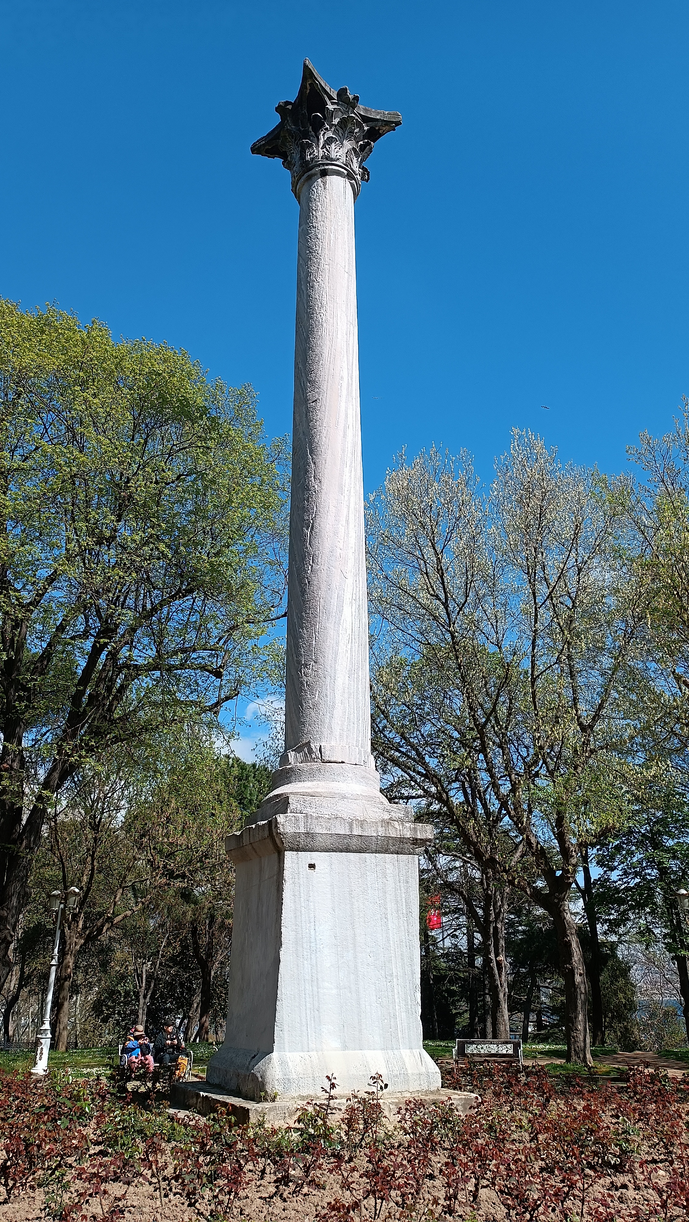 Une inscription latine gravée sur son socle : FORTUNAE REDUCI OB DEVICTOS GOTHOS (« À la Fortune revenue grâce à la défaite des Goths ») associe la colonne à l’empereur Claude II le Gothique (268-270 ap. J.-C.), célèbre pour sa victoire sur les Goths en 269 ap. J.-C. Elle pourrait avoir été réutilisée pour commémorer une victoire de Constantin Ier contre les Goths en 332 ap. J.-C. Surmontée d’un chapiteau corinthien, elle est constituée d’un seul bloc de marbre et s’élève à 18,5 m. de hauteur.