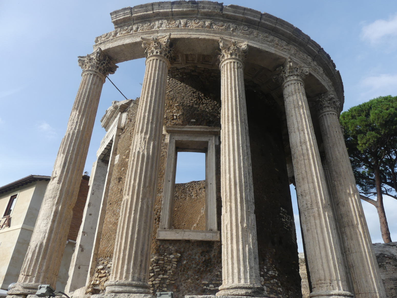 Le temple conserve une des deux portes permettant d’entrer dans la cella. On y aurait conservé le dernier des livres sibyllins achetés par Tarquin le Superbe à la Sibylle de Cumes. On les consultait en cas de crises graves. La cella était entourée de 20 colonnes corinthiennes dont seules 12 subsistent. Le plafond à caissons est décoré de rosaces. On ignore pourquoi est gravé sur l’architrave le nom de Lucius Gellius Publicola, élu consul en 72 av. J.-C pour combattre la révolte de Spartacus.