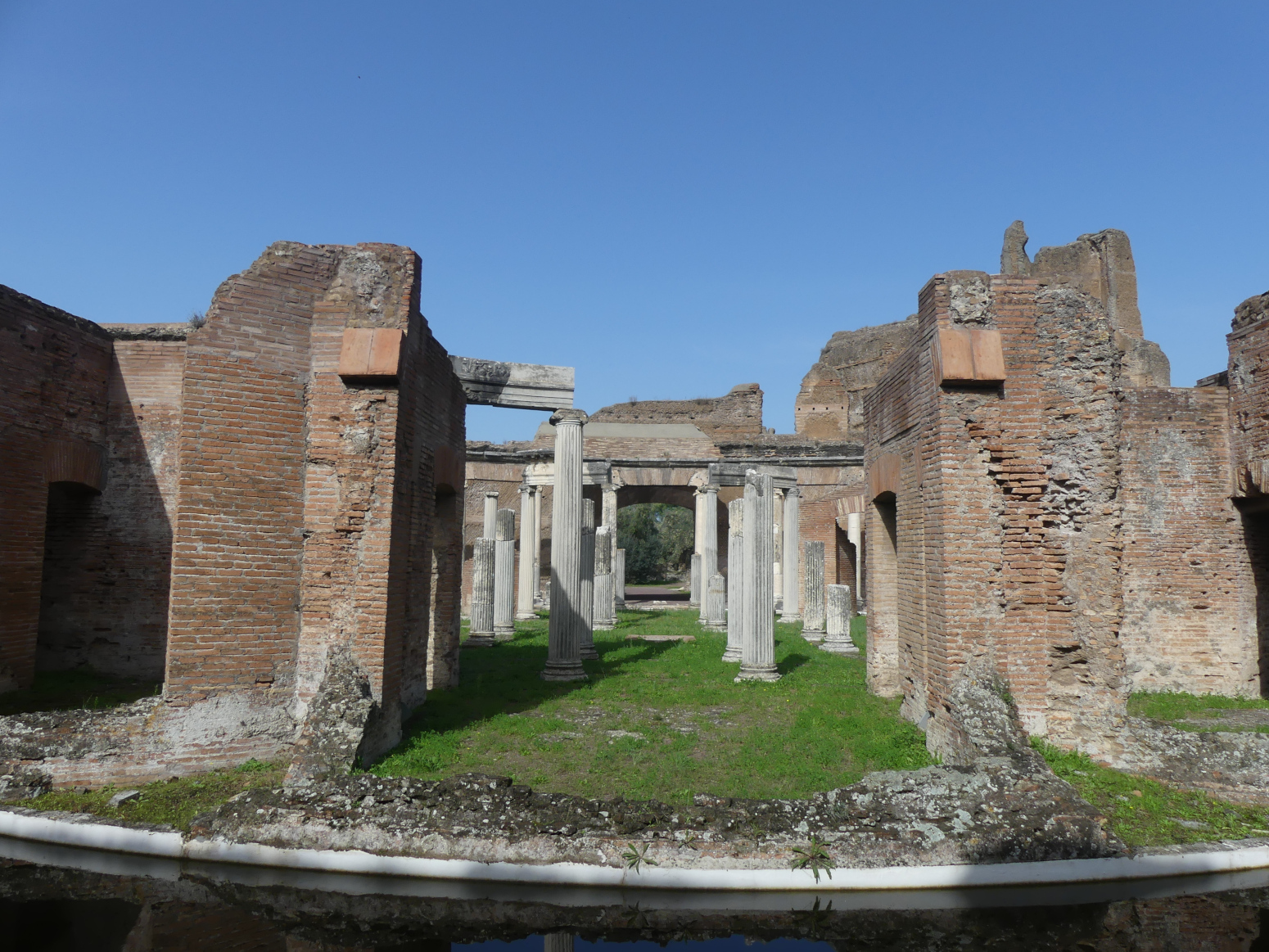 Au cœur de l’îlot du théâtre maritime qui doit son nom à la découverte de frises à thème marin, Hadrien avait fait construire une petite villa d’architecture classique dont les pièces étaient disposées autour d’une cour tapissée de mosaïques, ornée d’une colonnade et d’une fontaine centrale. Ainsi, ce lieu propice à la méditation et d’où l’empereur observait peut-être le ciel était doté de chambres à coucher, de toilettes et de petits thermes privés reliés au canal qui servait aussi de piscine.