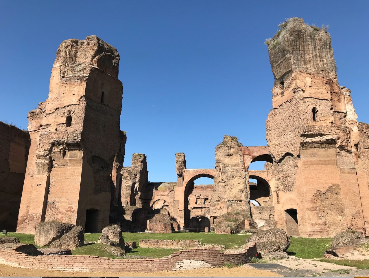 Vue des ruines du bâtiment central des thermes de Caracalla, gigantesque complexe thermal inauguré sous l’empereur Caracalla en 216 après J.-C.